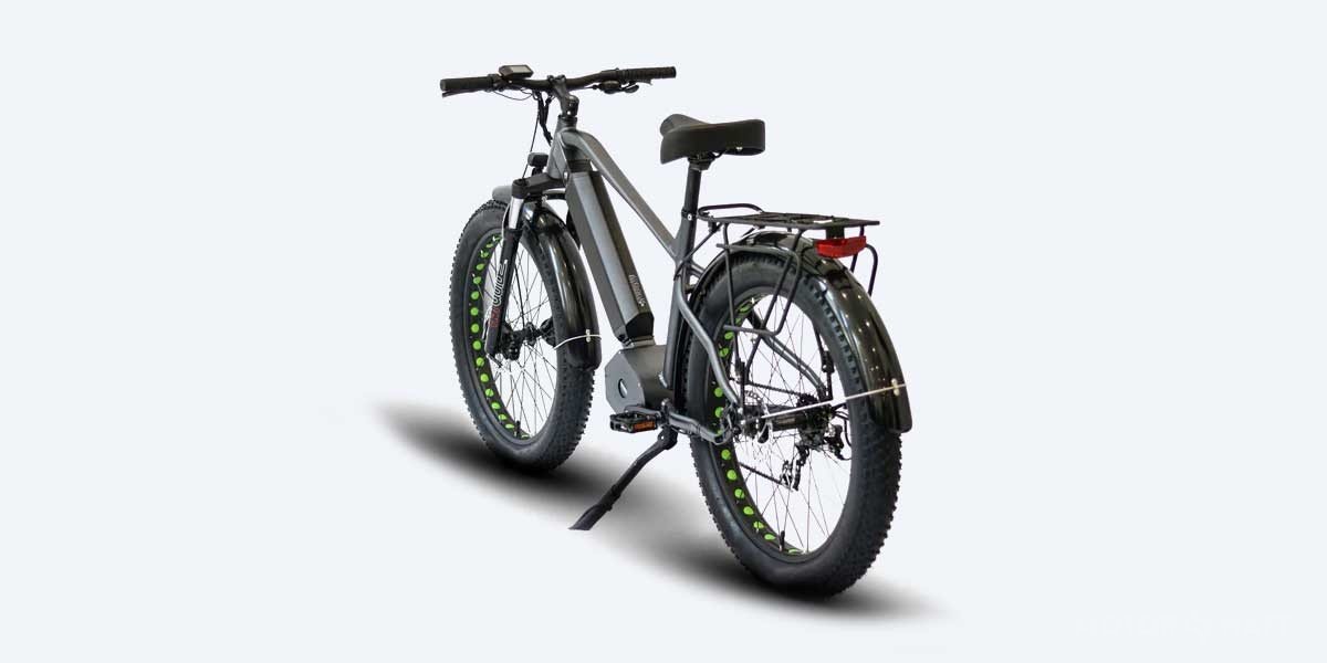Elegance and endurance intertwine in the Eunorau FAT-HD’s design. The dynamic framework, constructed from high-grade aluminum, complements the robust battery. The dual-height pannier rack is not only practical but also enhances the bike’s aesthetic appeal, integrating utility with visual allure.