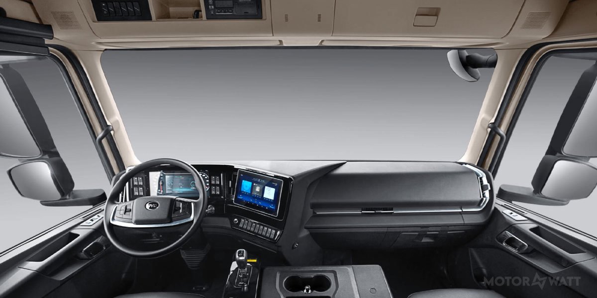 Inside, the cabin ditches the diesel-era dials in favor of a digital dash that keeps everything clean and intuitive. Expect a centralized control layout, ergonomic driver placement, and a focus on visibility and comfort during long hauls. There’s also integration for fleet telematics, likely with BYD’s in-house systems or third-party plug-ins.