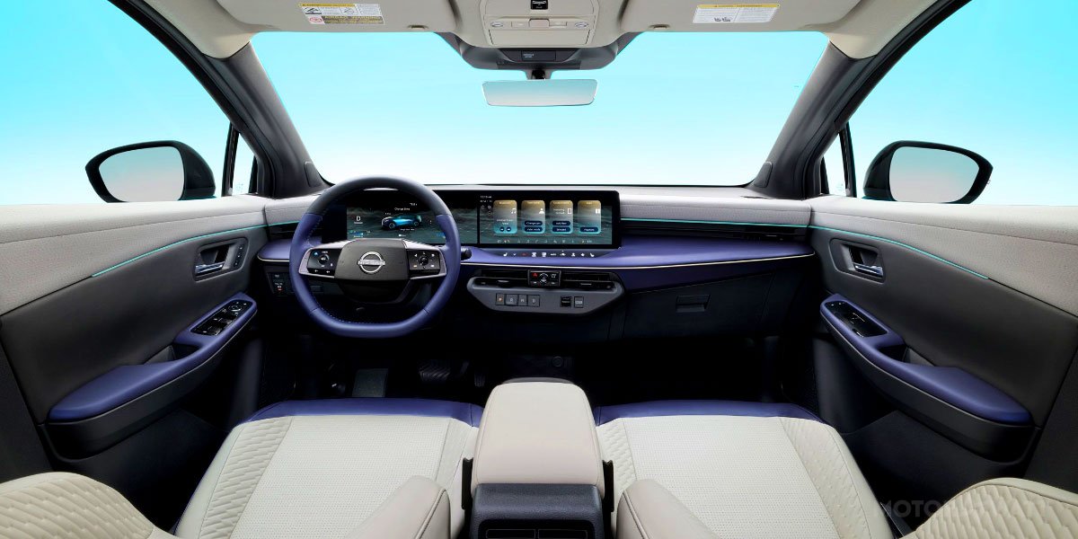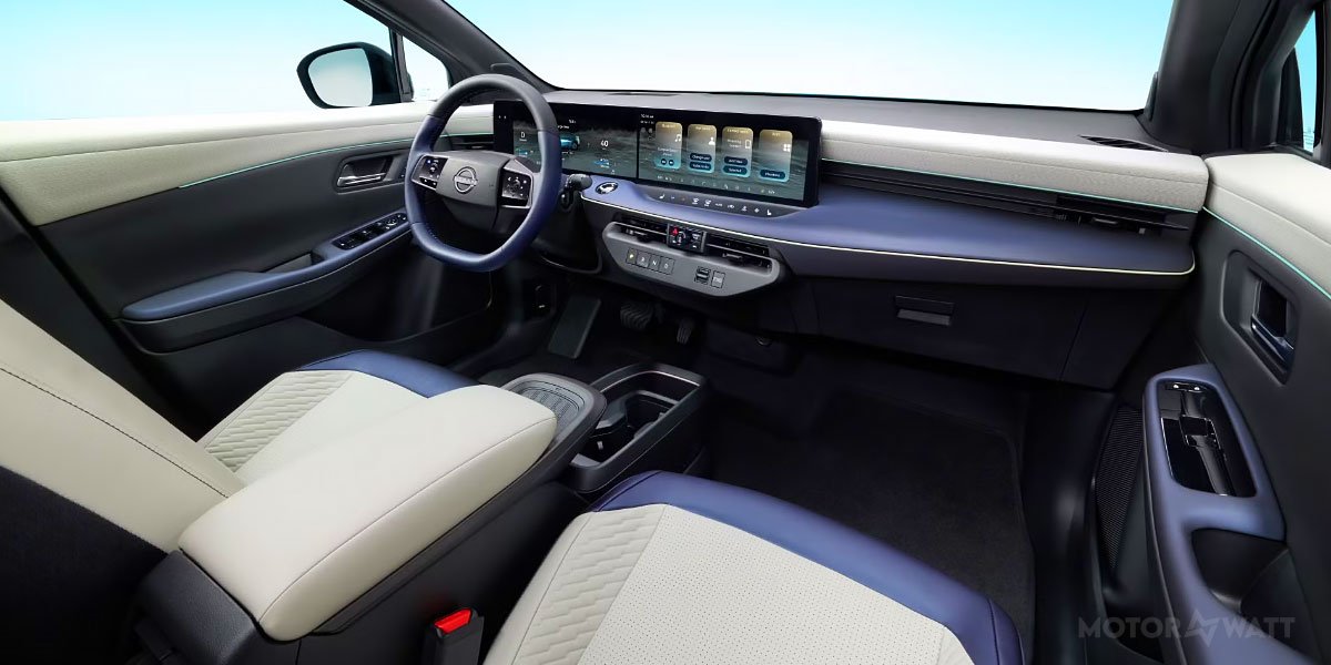 Step inside and you’re greeted by dual 12.3-inch screens for instrumentation and infotainment. A flat floor increases legroom, and rear passengers get better visibility and comfort. Vegan leather seats, recycled trim, wireless CarPlay/Android Auto, and built-in charge-route planning come standard. Higher trims offer a head-up display, ProPilot hands-free driving, and 360° camera views. The cargo area expands thanks to the crossover body, expected to exceed the outgoing Leaf’s 23.6 cu ft with seats up.